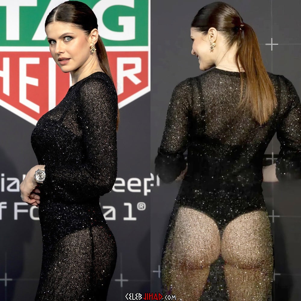 After miraculously shitting out her first baby from her dusty, cobweb-covered womb at the absolutely ancient age of 39 (no doubt thanks to the Satanic Jew science of IVF), actress Alexandra Daddario tries to regain her sex symbol status by showing off her postpartum nipples (in the photos below) and ass cheeks (in the pics above) while wearing sheer dresses.
