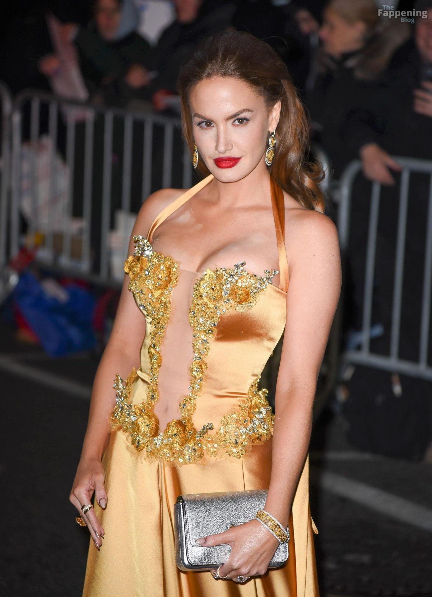 American model Haley Kalil is pictured at the Gotham Awards, wearin’ a gold gown. Peep her sexy tits on the red carpet.